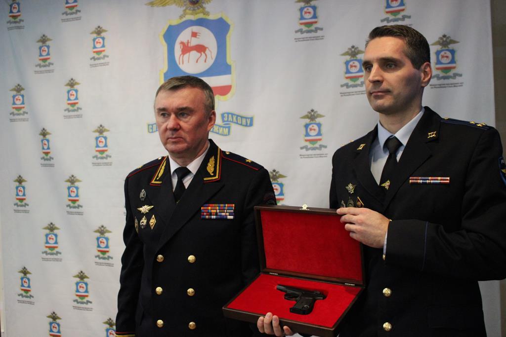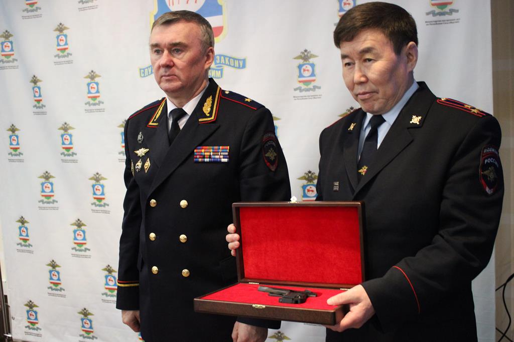 Начальник МУ МВД России «Якутское» Николай Кульбертинов и заместитель начальника Следственного управления МВД по Якутии Евгений Разин удостоились наградного оружия за добросовестное исполнение служебных обязанностей и высокие показатели в оперативно-служебной деятельности.