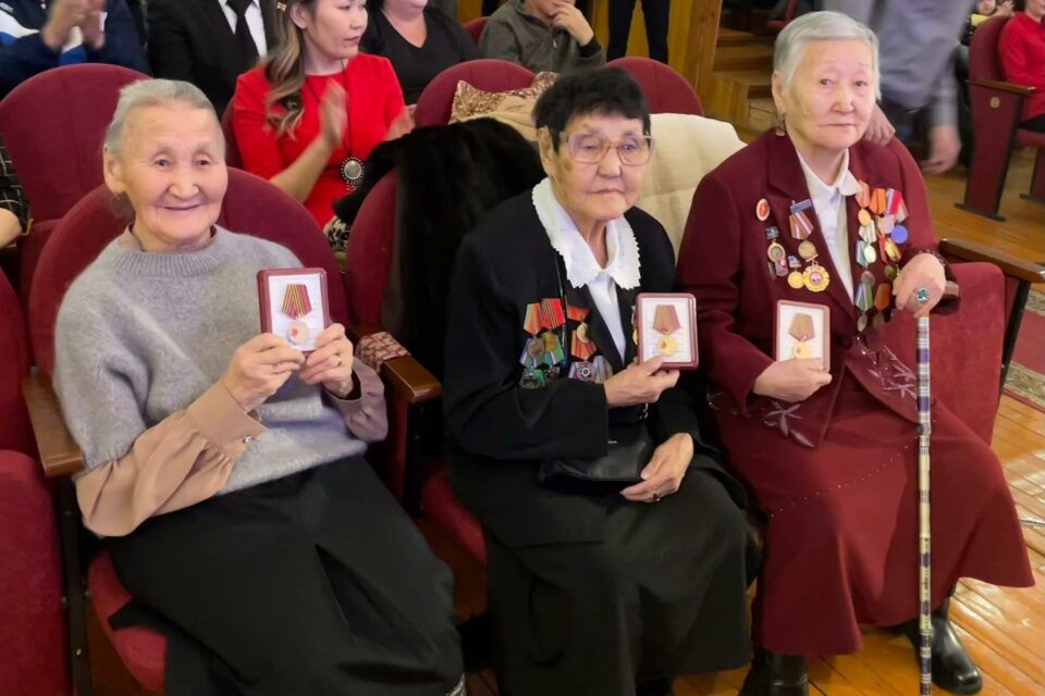 Заместитель председателя вручил ветеранам тыла Татьяне Аргуновой, Елене Васильевой и Лидии Тихоновой юбилейные медали «80 лет Победы в Великой Отечественной войне 1941–1945 гг.».