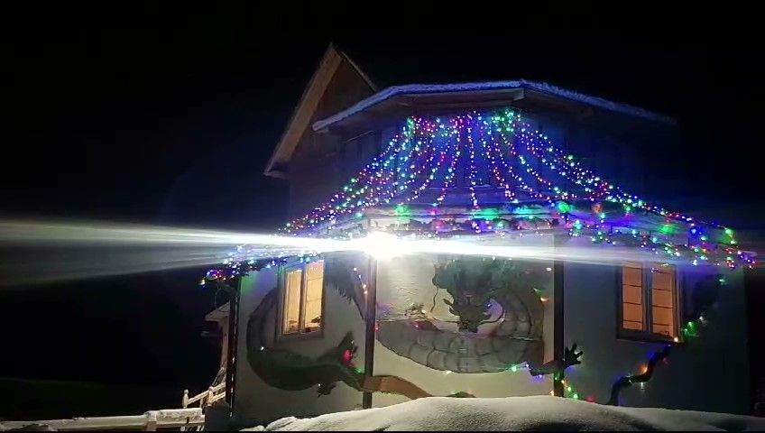 «Я в этом году переселилась под Новый год в новый дом. Всегда украшаю своё жилище под Новый год, и в старой квартире у меня всегда горели огни, создавая атмосферу праздника. Я окончила Намский педагогический колледж по специальности «изобразительное искусство», и для меня это несложно. Новый мой дом необычной шестигранной формы, и одну из его половин я украсила изображением дракона. Вырезала фигуру из картона, раскрасила, закрепила и подсветила гирляндой. А на крыше дома распустила 50-метровую гирлянду. Всё просто, но радует глаз», — рассказала ЯкутияDaily Венера Архипова.