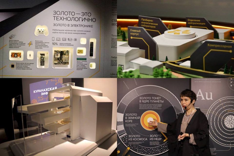 Центральным элементом экспозиции стал макет, отражающий ключевые этапы золотодобычи на Куранахском рудном поле, расположенном в Алданском районе. Он знакомит с современным золотодобывающим предприятием.