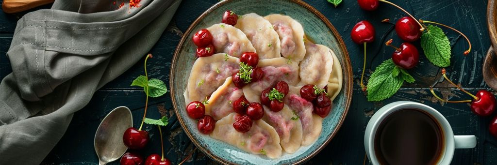 Полить вареники можно сиропом, приготовленным на основе вишневого сока. По желанию к вишне можно добавить щепотку корицы.